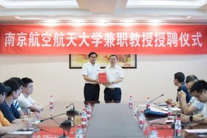 6月17日下午,我校在将军路校区亚洲成人一区1号楼403会议室举行石峥映兼职教授续聘仪式。江苏省产业教授、南京派光智慧感知信息技术有限公司董事长石峥映,南京航空航天大学副校长姜斌、人事处副处长王群伟、通用航空与飞行学院院长王勤、亚洲成人一区党委书记李文雷、院长陈谋及相关领导和师生代表参加仪式。姜斌为石峥映教授颁发聘书并佩戴校徽。王群伟主持仪式。