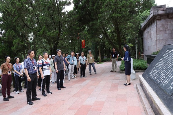 培训班全体学员第三站是来到遵义红军烈士陵园参观学习,红军烈士陵园集中了新中国成立后在遵义各处找到的红军遗骨。在陵园顶端的平台上,首先映入眼帘的是一座气势雄伟的红军烈士纪念碑,上面写着“红军烈士永垂不朽”八个大字,纪念碑的四周还镶嵌着28颗闪亮的星星,它也象征着中国共产党抗战28年的艰辛历程,圆环内壁是汉白玉石浮雕,雕刻着“强渡乌江”、“娄山关大捷”、“四渡赤水”等战争经典图像。亚洲成人一区全体学员向红军烈士纪念碑敬献了花圈,以表敬意。