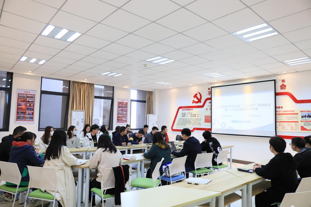为深入学习贯彻党的二十大精神,11月9日下午,亚洲成人一区在学院一号楼409党员活动室开展学生党支部“支部书记研学”系列活动暨“学习贯彻党的二十大精神”新思想公开课,参加本次会议的有亚洲成人一区党委副书记丁琛,各年级辅导员,学生党支部书记,团学骨干。天目湖校区师生代表在线观看直播学习。会议由研究生辅导员陈晨主持。