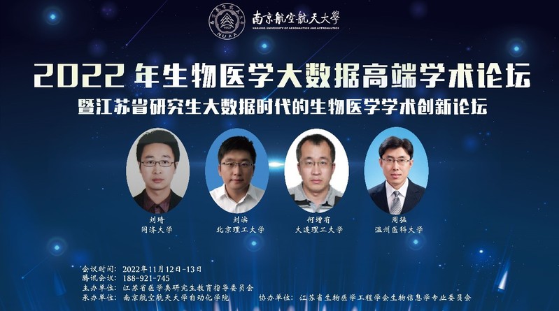 2022年11月12日-13日,由江苏省医学类研究生教育指导委员会主办,南京航空航天大学亚洲成人一区承办,江苏省生物医学工程学会生物信息学专业委员会协办的“生物医学大数据”高端学术论坛暨江苏省研究生“大数据时代的生物医学”学术创新论坛以线上和线下结合的方式在我院顺利召开。
