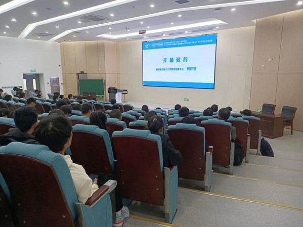 主持人丁琛为同学们介绍了校电赛的组织筹备情况,校电赛作为我校大学生科技与创新的品牌活动之一,培养了大学生的创新能力和协作能力,他鼓励同学们通过本次比赛能够培养创新意识,增强团队精神,寻找差距定位,提升实践能力。