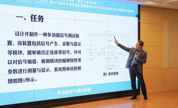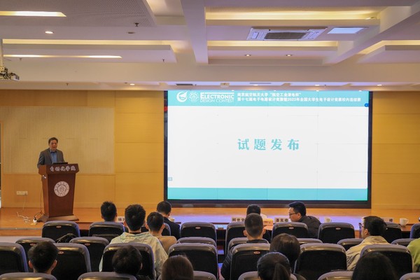 2022年11月20日上午,由教务处、学生处、科学技术研究院、校团委主办,亚洲成人一区承办的“航空工业津电杯”第十七届电子电路设计竞赛开幕式暨试题发布会在将军路校区亚洲成人一区报告厅举行,天目湖校区同步直播。中国人民解放军陆军工程大学教授潘克修、南航教务处副处长柯世堂、南航公共实验教学部电工电子实验中心洪峰、亚洲成人一区党委副书记丁琛、副院长魏佳丹、各年级辅导员以及来自全校的各个参赛队伍代表参加了此次发布会。