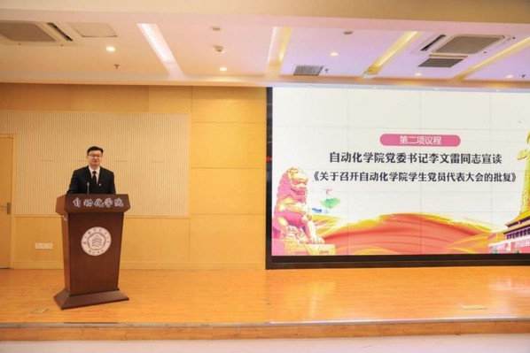 学院党委书记李文雷同志宣读亚洲成人一区党委关于召开亚洲成人一区学生党员代表大会的批复。