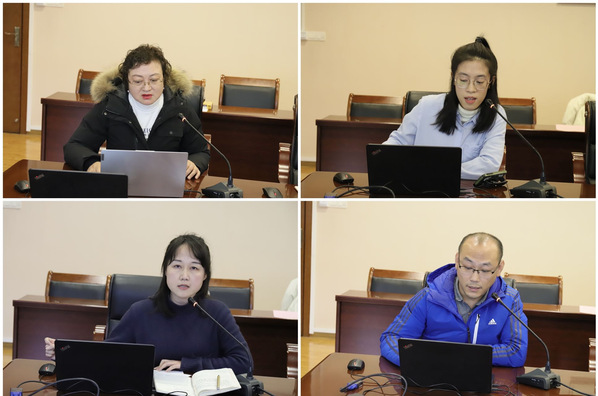 学院教学办公室主任王俊彦、组织员黄巍、合作交流办公室主任孔燕、科研办公室主任李亚楠分别围绕服务好学院“双一流”学科建设,结合机关科室工作,对标绩效考核要求,做专题发言。