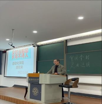 潘双来以“学有所用、学有所悟”为主题,他先用四个“老”字,“老党员、老教师、老校友、老学生”,生动阐述了自己与党、与南航、与学院的深厚情感,引导学生跨越时间,体验南航的70年历史沿革,感受时代变迁,激发学生对理想信念的坚守。他通过分析一篇关于体育之效与强弱之辩的高考作文题和列举新时代下我国航天科技成就中涌现的许多南航人的身影,来勉励青年学生要永葆奋斗精神,勤于学习,只争朝夕,不负韶华,将个人的价值实现与国家的发展、民族的复兴紧紧联系在一起。