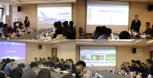 南医大第一附属医院肿瘤科顾艳宏教授先介绍了部分临床研究方向和基础研究成果,就人工智能和临床肿瘤治疗融合与转化的新模式进行了探讨;我校钱志余教授介绍了团队承担的国家重大科研仪器研制项目、国家自然科学基金原创探索计划项目等的最新研究成果、宋晓峰教授就生物信息学领域的发展历程、发展前景进行了探讨、李韪韬研究员介绍了南航生物医学工程系的各研究方向及近几年所承担的科研项目、取得的省部级以上科学技术奖等研究成果,双方交流热烈。