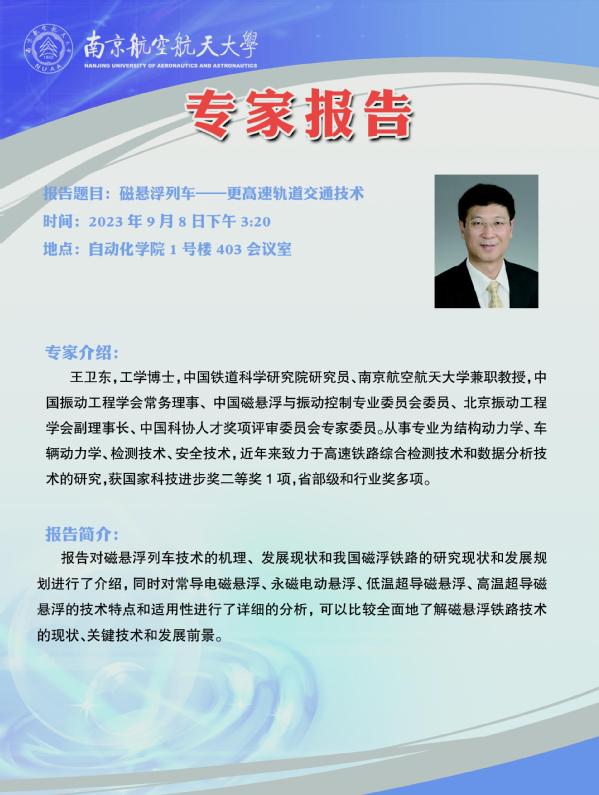 【学术报告】王卫东:磁悬浮列车——更高速轨道交通技术