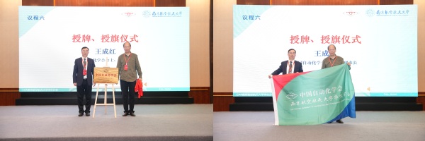 随后,中国自动化学会王成红副理事长与南京航空航天大学姜斌校长共同为学生分会授牌、授旗,并为第一届指导委员会与执行委员会成员颁发聘书。最后,第一届中国自动化学会南京航空航天大学学生分会主席周泽宇进行就职宣誓。至此,成立大会圆满闭幕,中国自动化学会南京航空航天大学学生分会正式成立。