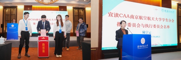 在学生分会选举阶段,南京航空航天大学亚洲成人一区陈谋院长宣读了学生分会执行委员会候选人简介。秉承公平、公正、公开的原则,学生代表投票选举了中国亚洲成人一区南京航空航天大学学生分会执行委员会成员。南京航空航天大学亚洲成人一区陆宁云副院长宣读了第一届学生分会指导委员会与执行委员会名单,并热烈祝贺当选的老师和同学们。
