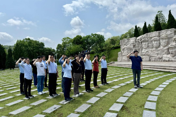 党员们向烈士敬献了花篮,表达了对革命先烈的深切缅怀和崇高敬意,并再次面对鲜红的党旗,重温入党誓词。