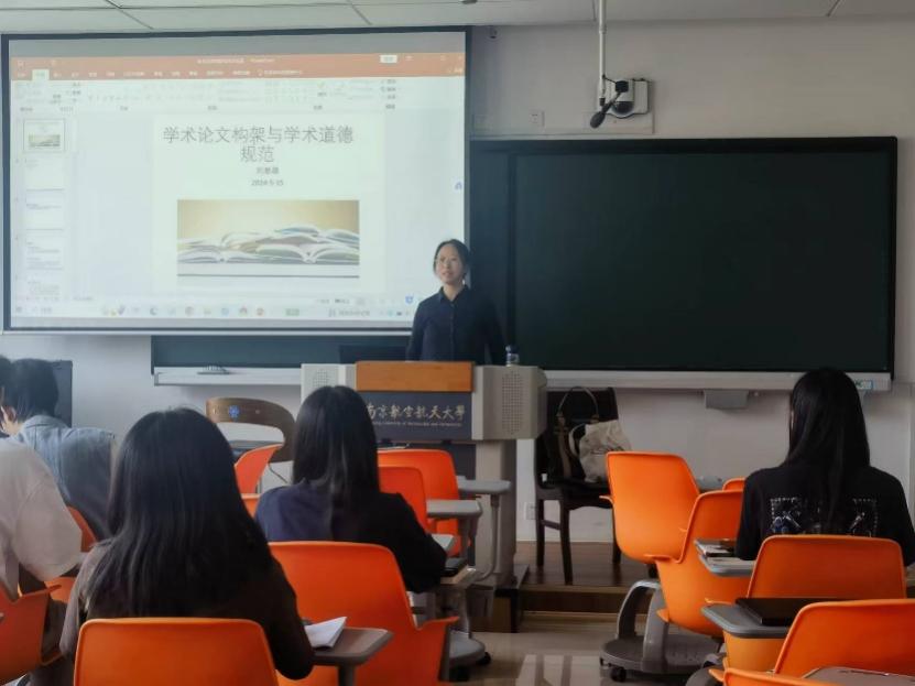 特邀嘉宾刘晶晶则聚焦于“学术论文构架与学术道德规范”的主题,为同学们带来了精彩的分享。刘晶晶详细介绍了学术论文的写作技巧和流程,强调了参与科研活动的重要性,着重讲解了学术道德规范方面的要求。刘晶晶鼓励同学们在科研探索中保持好奇心和求知欲,同时也要坚守诚信的学术态度,遵守学术界的规则和道德标准。