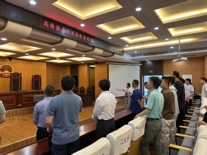 随后,师生党员一同参观了模拟法庭,近距离感受法律的神圣与威严。在模拟法庭“沉浸式”情景课堂学习中,党员们了解了法庭的构造和当前庭审的大致流程,对法律与法庭有了更加直观和深刻的认识。