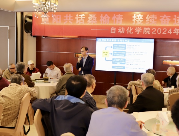 党委书记李文雷代表全院教职工向退休老教师们致以诚挚的祝福,对老教师们对学院的建设发展做出的贡献致以诚挚的感谢。李书记表示,学院建设发展取得的成绩离不开老教师们的关心和支持,希望重阳节的联谊活动能够作为学院的传统活动传承和发扬下去,成为学院教师和老教师们沟通交流的桥梁和平台。李书记强调,正是有了一代又一代自动化人不懈的努力与奋斗,学院才能在时代的浪潮中乘风破浪,不断前行。我们必将怀揣着共同的梦想,书写建设航空航天特色鲜明的世界一流亚洲成人一区的壮丽篇章。最后,李书记祝福老教师及家人们身体健康、阖家幸福。