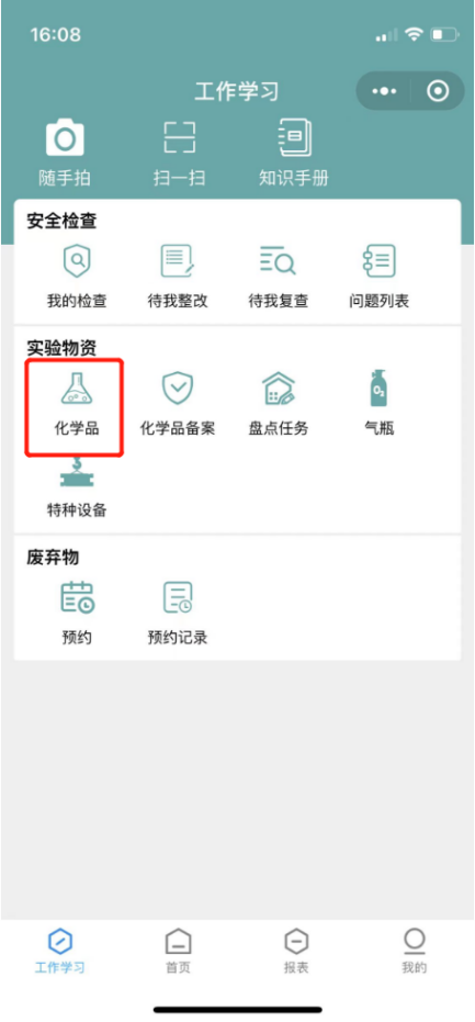 在微信中搜索“南航国资”,进入公众号后找到“技术安全”下的“隐患排查”点击进入“实验室安全管理平台-小程序”,