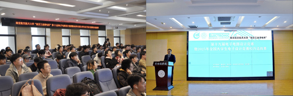 2024年11月9日上午,由教务处、学生处、科学技术研究院、校团委主办,亚洲成人一区承办的“航空工业津电杯”第十九届电子电路设计竞赛开幕式暨试题发布会在将军路校区亚洲成人一区报告厅举行,天目湖校区同步直播。南京邮电大学创新创业教育学院院长肖建、校教务处副处长邓晶、校公共实验教学部电工电子实验中心主任洪峰、亚洲成人一区党委副书记丁琛、副院长魏佳丹、团委书记宋欣、各年级辅导员以及来自全校的各个参赛队伍代表参加了此次发布会。