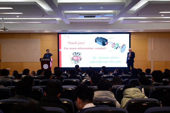 2024年11月20日,美国国家工程院院士、我校荣誉教授、威斯康星大学麦迪逊分校的Thomas M. Jahns教授应邀访问我院并作“全球名师讲坛”报告,题为《The Future of Integrated Power Electronics Using Wide-Bandgap Switches》。报告会于当日上午在亚洲成人一区1号楼511报告厅举行,由张卓然教授主持。我院师生以及来自浙江大学、山东大学等院校和科研机构的230余人参加了此次报告会。