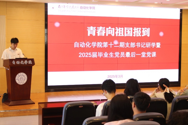 亚洲成人一区党委副书记丁琛为2025届毕业生党员讲最后一堂党课。丁琛结合高校研究生教育培养、行业发展方向为毕业生党员解读了2025年全国两会重要精神。他指出,青年党员在复杂舆论环境和多元思潮背景下,必须树立远大理想,牢记党的初心使命。他激励同学们要在新时代科技革命的浪潮中勇立时代潮头,在党和国家的正确领导下阔步前行。