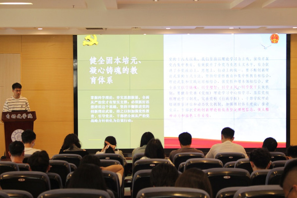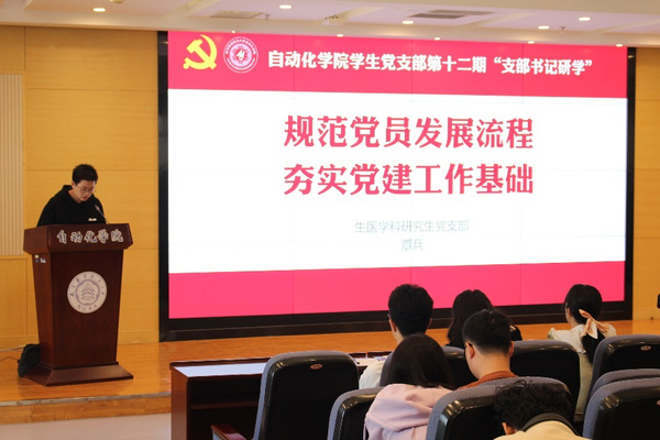 生医学科研究生党支部组织委员覃兵围绕《规范党员发展流程,夯实党建工作基础》主题进行领学。他结合支部工作实际详细介绍了学生党员发展的具体流程和注意事项,为亚洲成人一区2025年春季学生党员发展工作奠定扎实的基础。