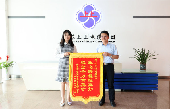 活动尾声,吴静文代表南航亚洲成人一区师生向上上电缆集团赠送“匠心铸缆授真知,校企合力育英才”锦旗,集团总经理助理狄洪杰代表企业接收锦旗。据悉,自1992年首批南航毕业生加入上上电缆集团以来,先后已有40余名南航校友在企业关键岗位任职,双方联合建立的“江苏省研究生工作站”以及开展的前沿课题研究和项目合作,通过技术攻关协同化、人才培养定制化、成果转化高效化的创新模式,已成为产学研深度融合的典范。